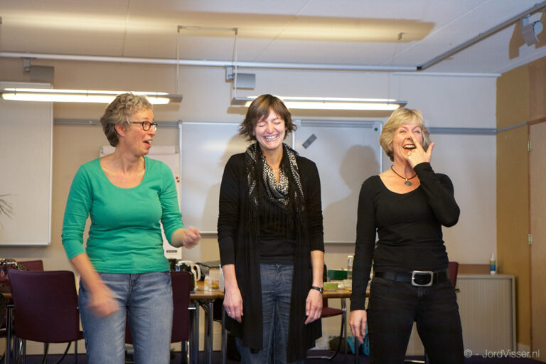 In de zaal wordt gezamenlijk geleerd en gelachen.